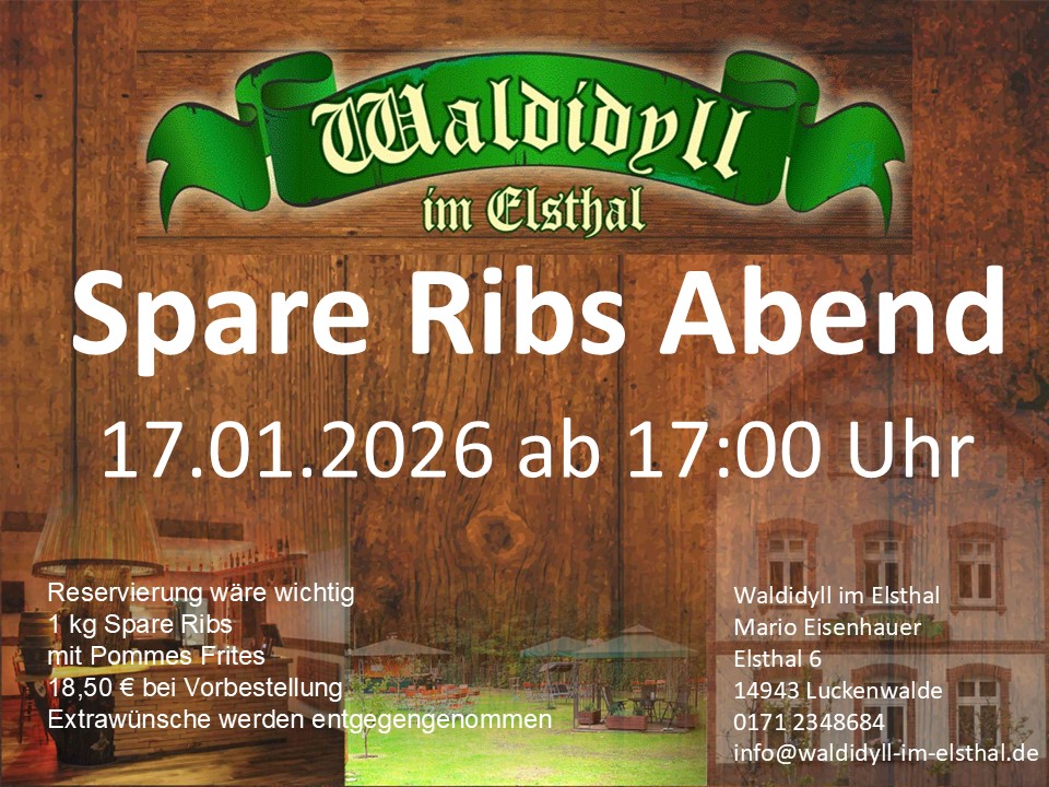 Ab 17:00 Uhr könnt ihr 1kg Spare Ribs mit Pommes Frites genießen. Sollte jemand etwas anderes Essen wollen, einfach bei der Reservierung ansagen 01712348684